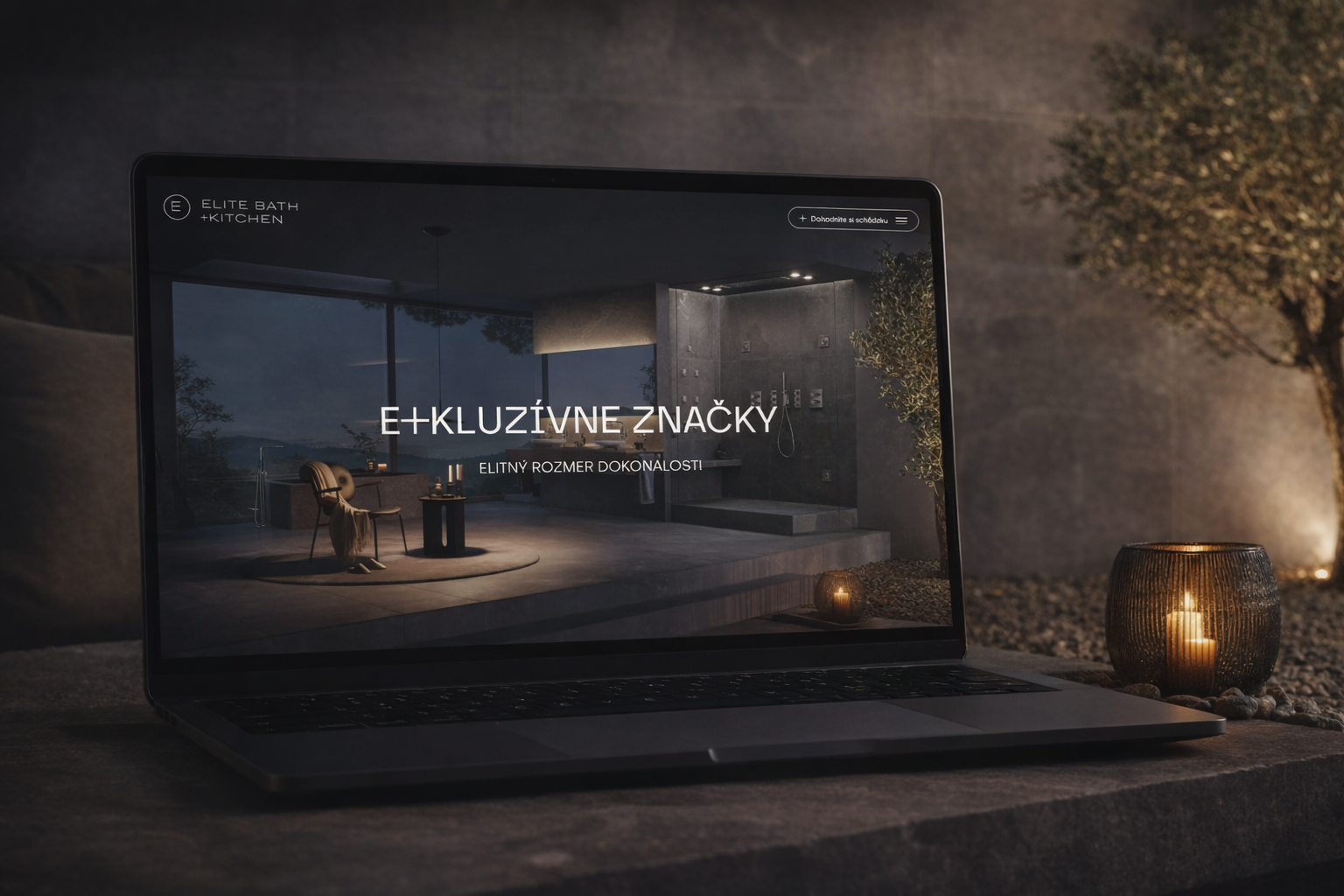 Elite Bath Kitchen is a luxury design studio in Bratislava representing 34 premium global brands — including 6 exclusive distributorships for the Slovak market. The website needed to translate the tactile showroom experience into a digital format without losing the sense of material quality and craftsmanship.